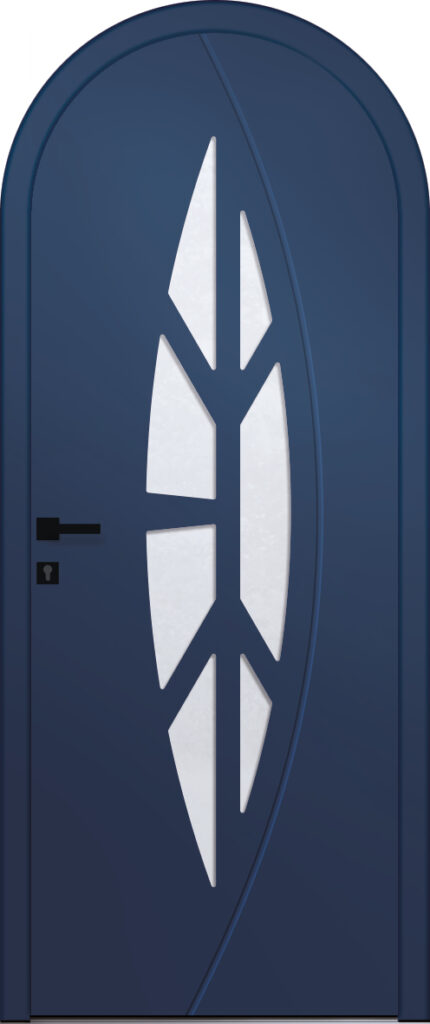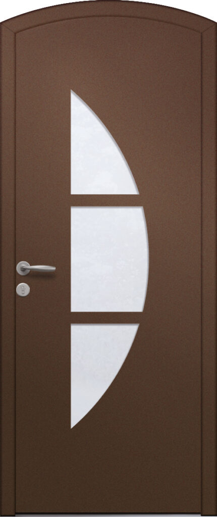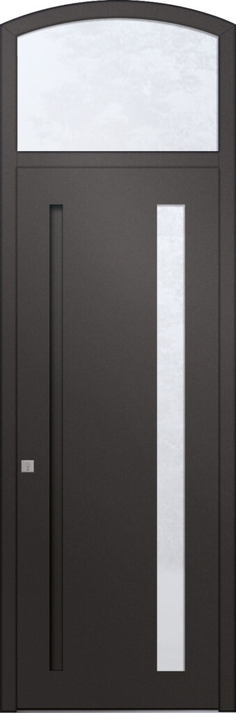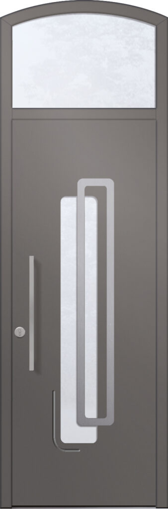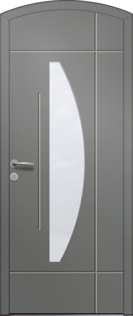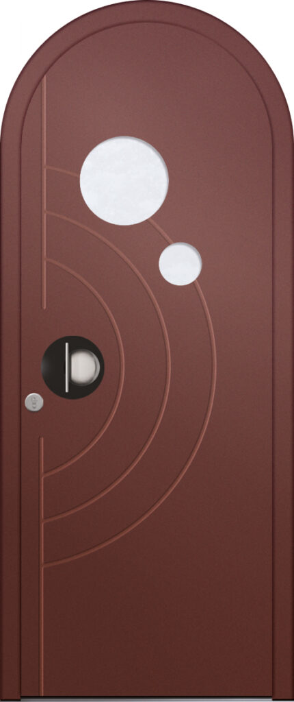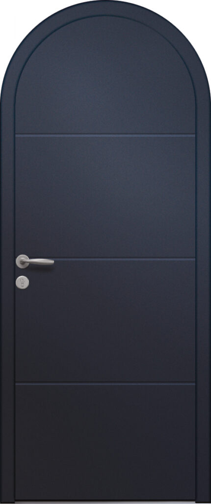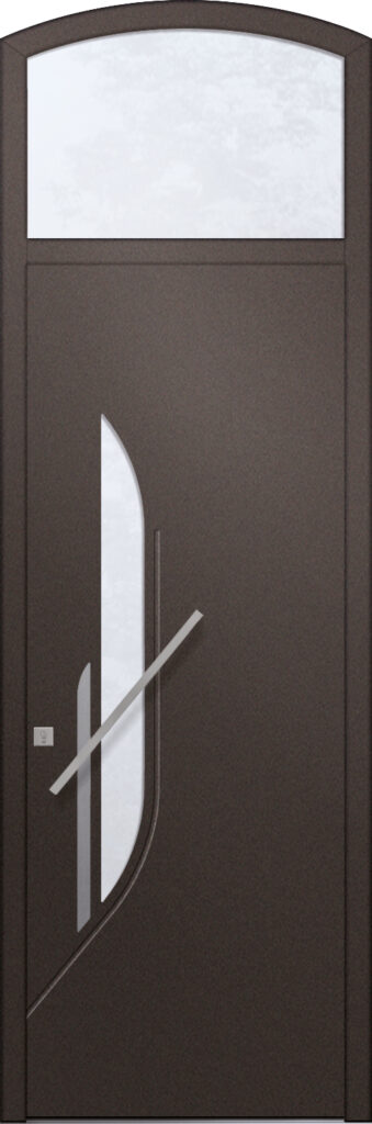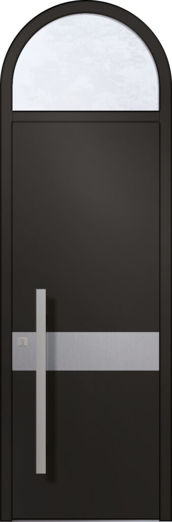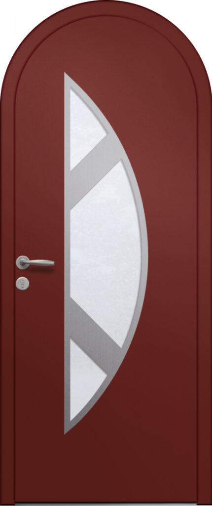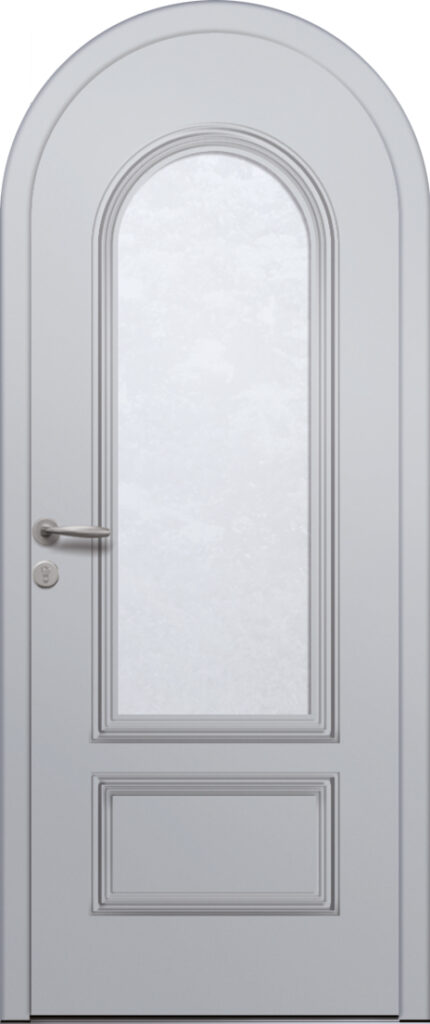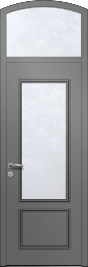 - Porte d’entrée cintrée avec imposte plein cintre et arc surbaissé : une version qui accentue la luminosité intérieure tout en conservant la solidité et l’élégance caractéristiques de la gamme.